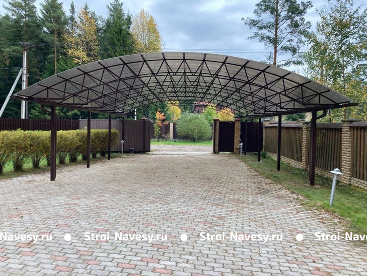 Арочный автонавес с поликарбонатом для загородного дома