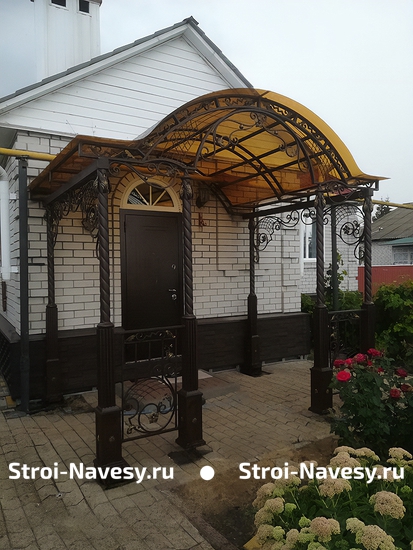 Арочный навес на фигурных балках с поликарбонатом для крыльца